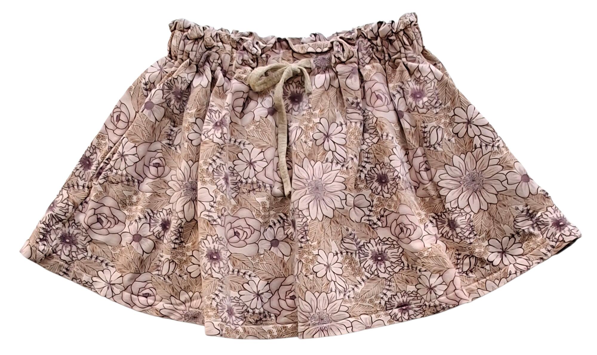 En Fant rosa blomstret nederdel str. 92 med lommerne i siderne, og med justerbar elastik og bindebånd i taljen.