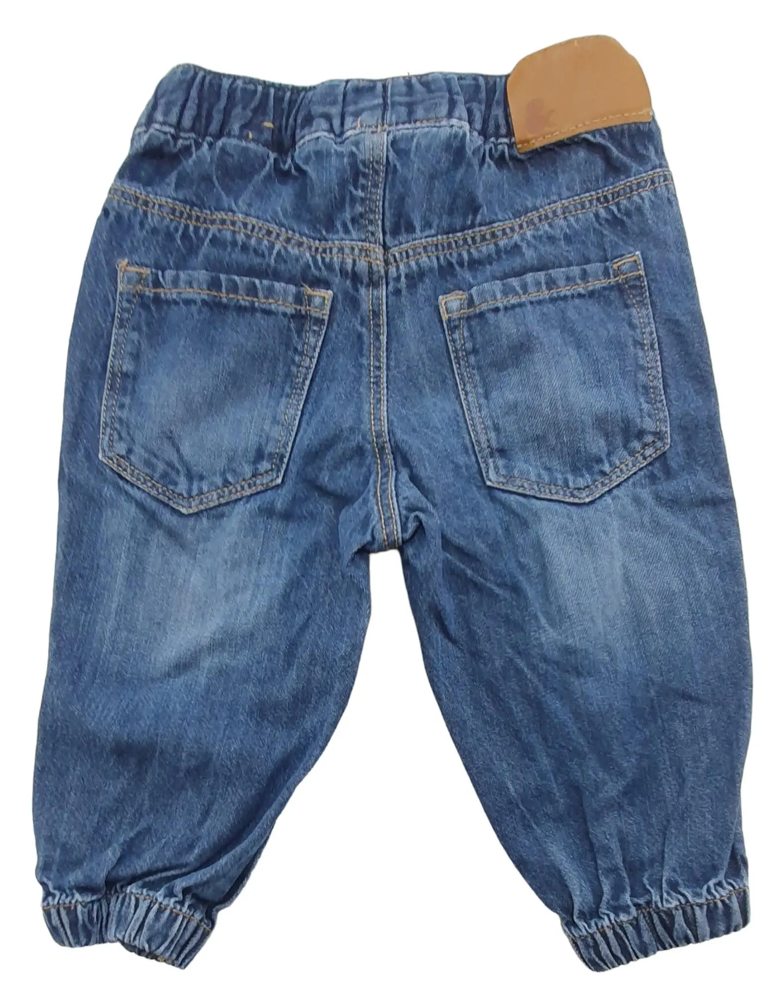 H&M blå pull-on denim bukser str. 74 med to lommer foran og bagpå og med elastik i bukseben og taljen.