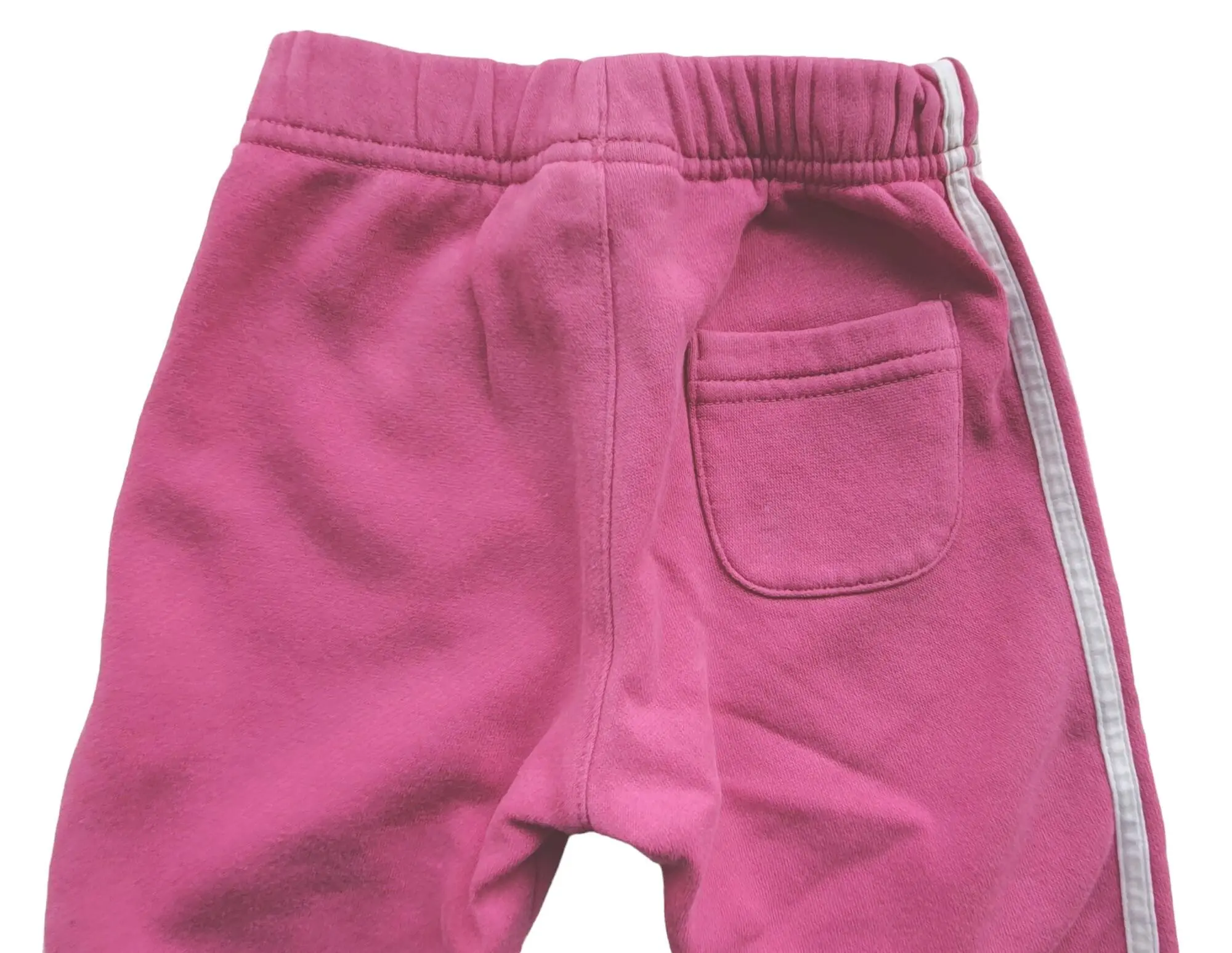 Adidas pink sweatpants str. 74 med hvide striber ned af buksebenene, en baglomme og med elastik i taljen.