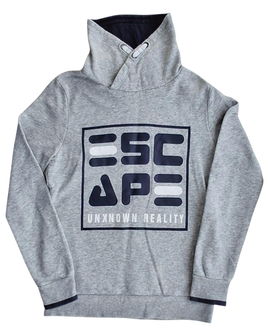 H&M lysegrå langærmet sweatshirt str. 146-152 med høj hals der kan bukkes ned, rib kanter og med et stort tryk på forsiden. Obs lidt vaskefnuller.