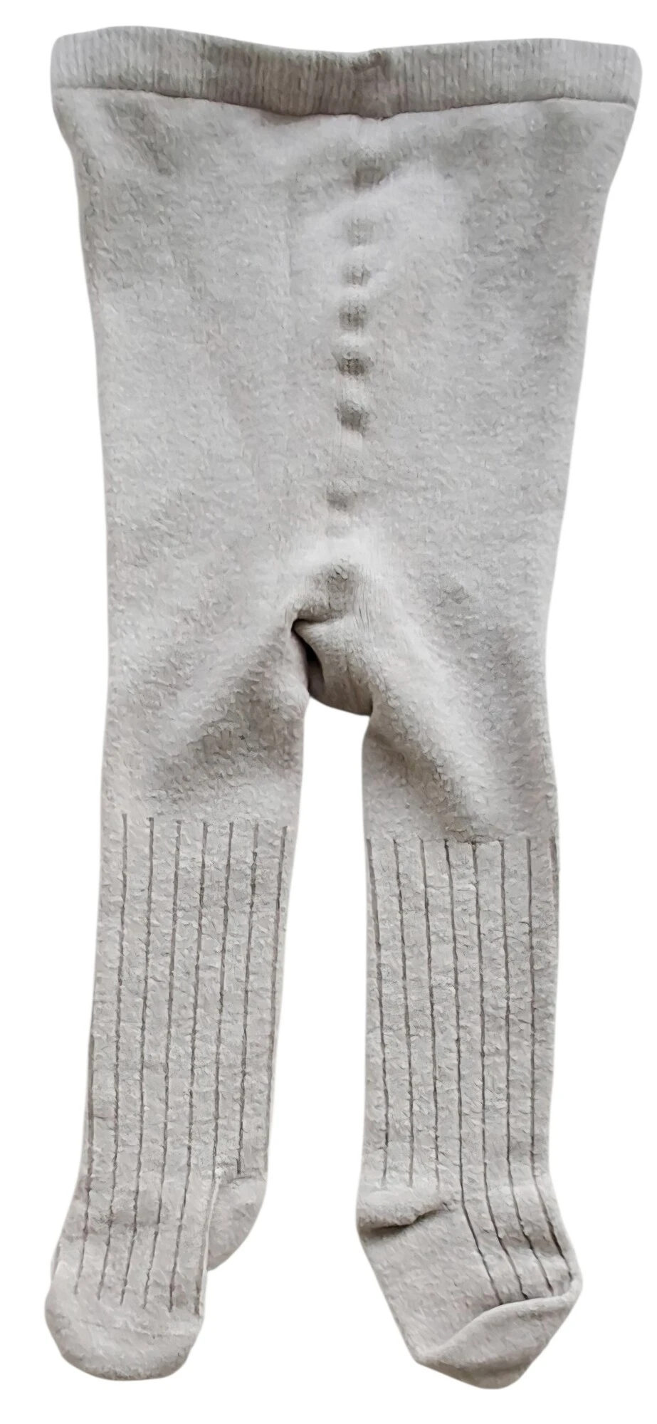 Be kids uld og viscose beige strømpebukser str. 68-74 med striber ned af benene, fødder og elastik i taljen. 56% viscose, 25% uld, 17% polyamid og 2% elastane.