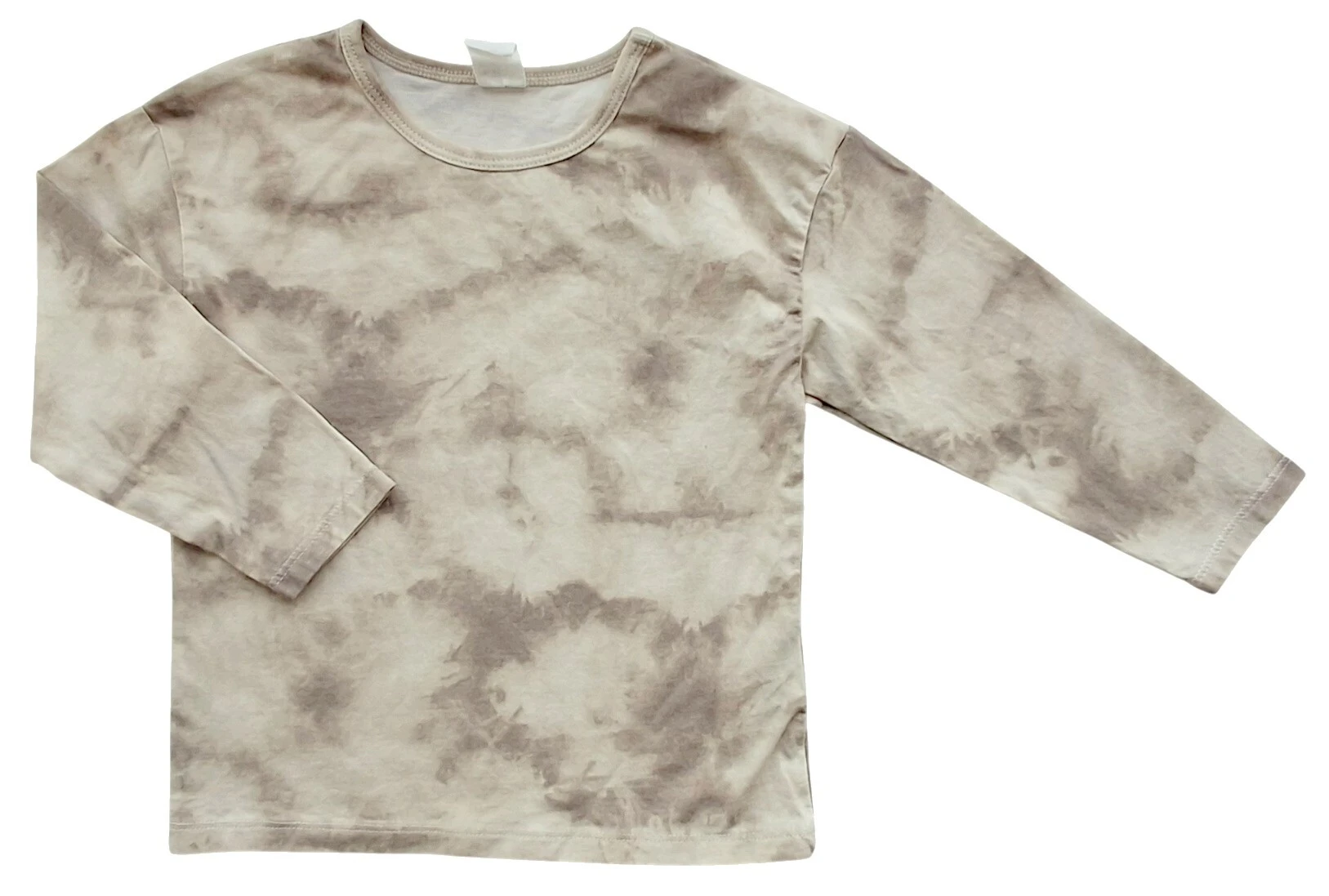 H&M beige batikfarvet langærmet bluse str. 92 med en trykknap på skulderen og med en rund halsudskæring. 100% bomuld.