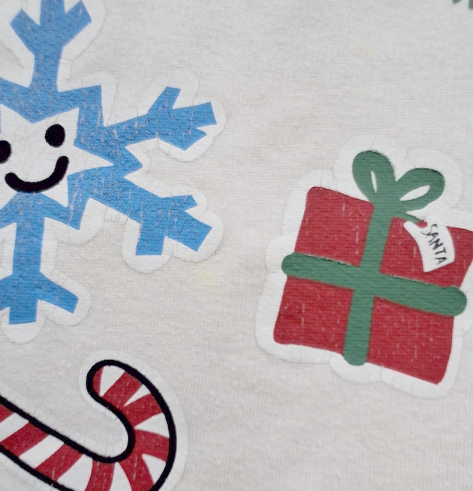 H&M råhvid langærmet jule sweatshirt str. 98-104 med rib kanter og med fine tryk på forsiden. Obs lidt krak i trykket og en meget svag gullig plet på forsiden se billede.