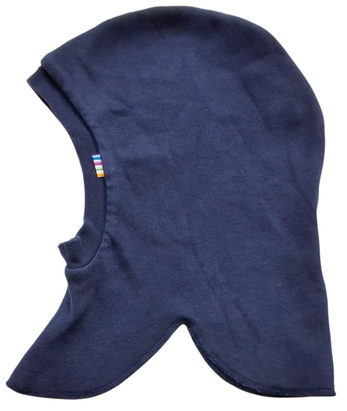 Joha mørkeblå to-lags bomulds elefanthue str. 48 cm med ribkant omkring ansigtet. 100% bomuld.