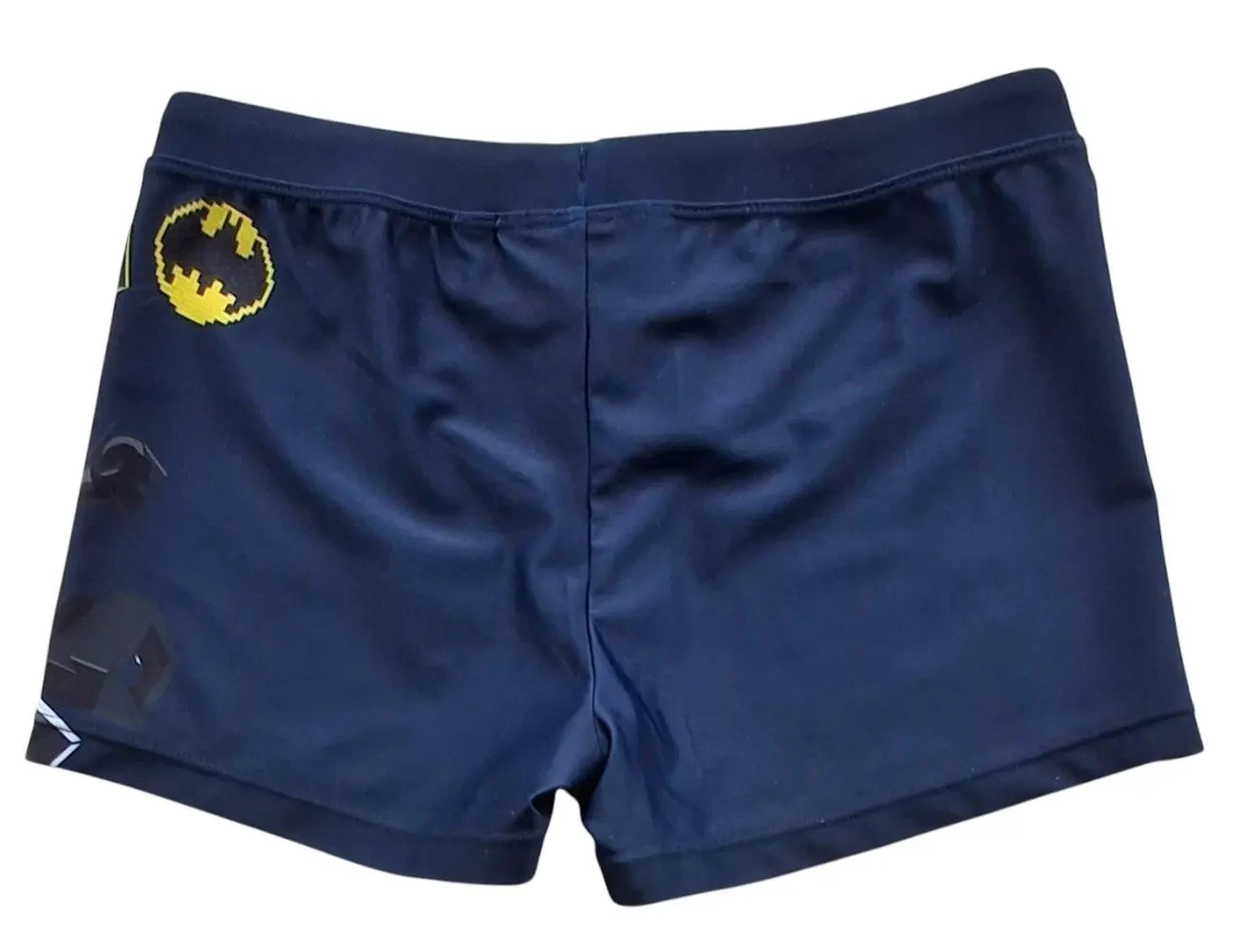 Lego wear mørkeblå badeshorts str. 152 med et Batman tryk på det ene bukseben og med justerbar elastik i taljen.