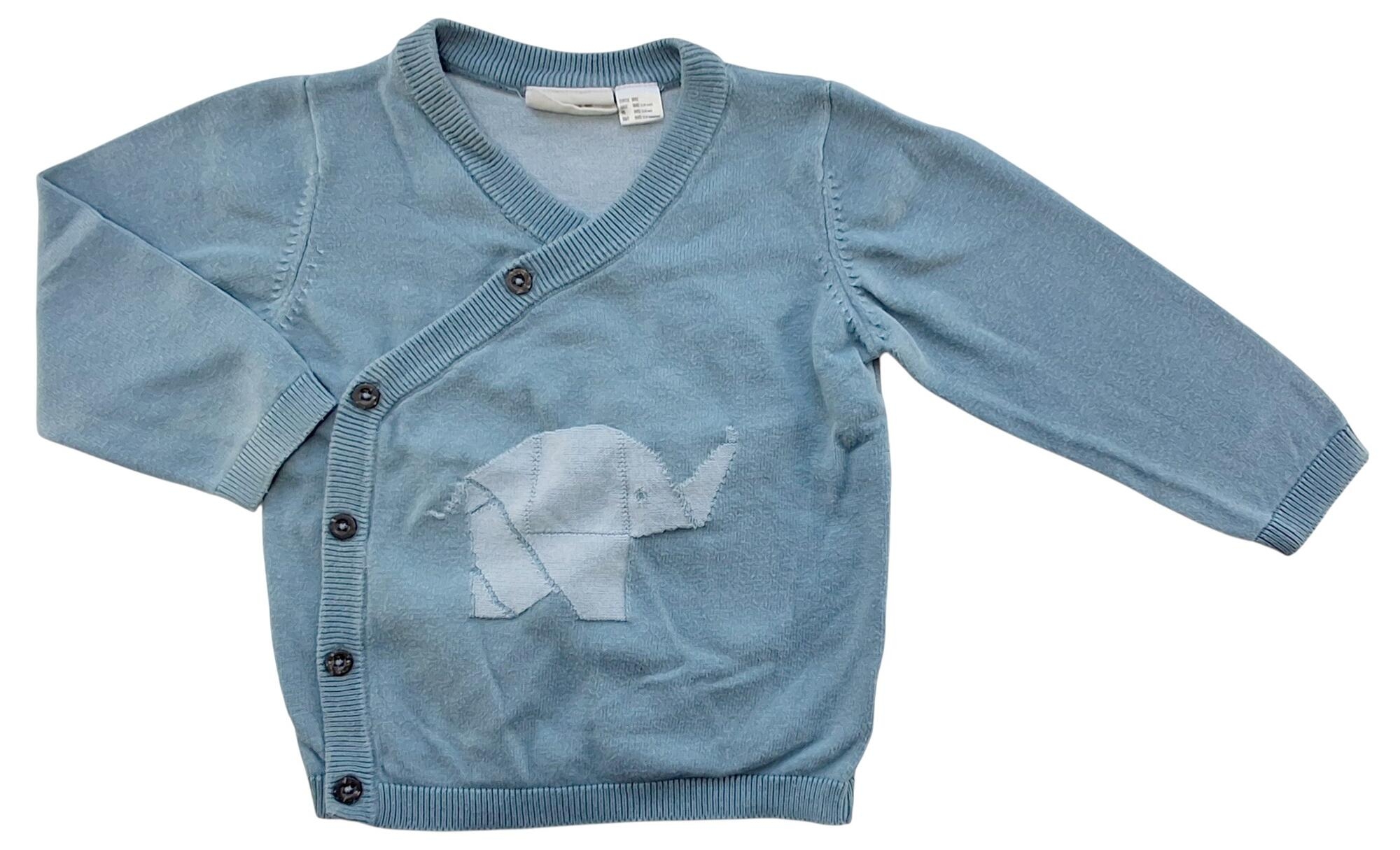 Lupilu gråblå finstrikket slå-om trøje str. 86-92 med en elefant på forsiden og med knapper ned i siden. 100% bomuld.