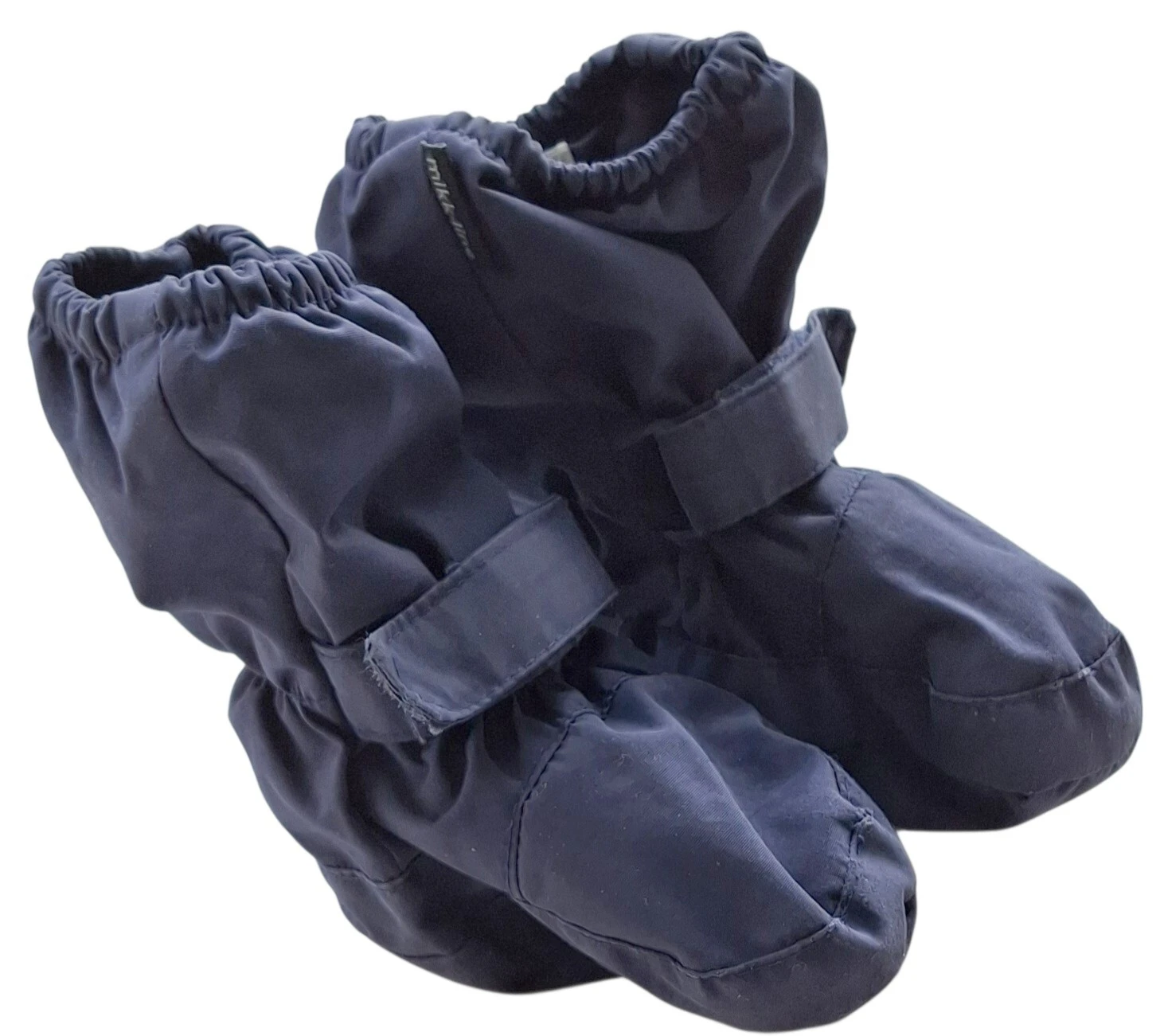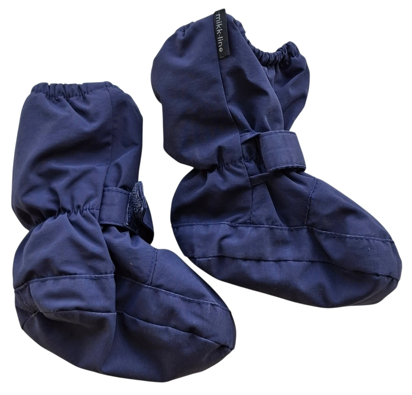 Mikk-line mørkeblå overtræksfutter str. 74 med elastik øverst på futten og omkring anklen, og der er også en velkrolukning omkring anklen.