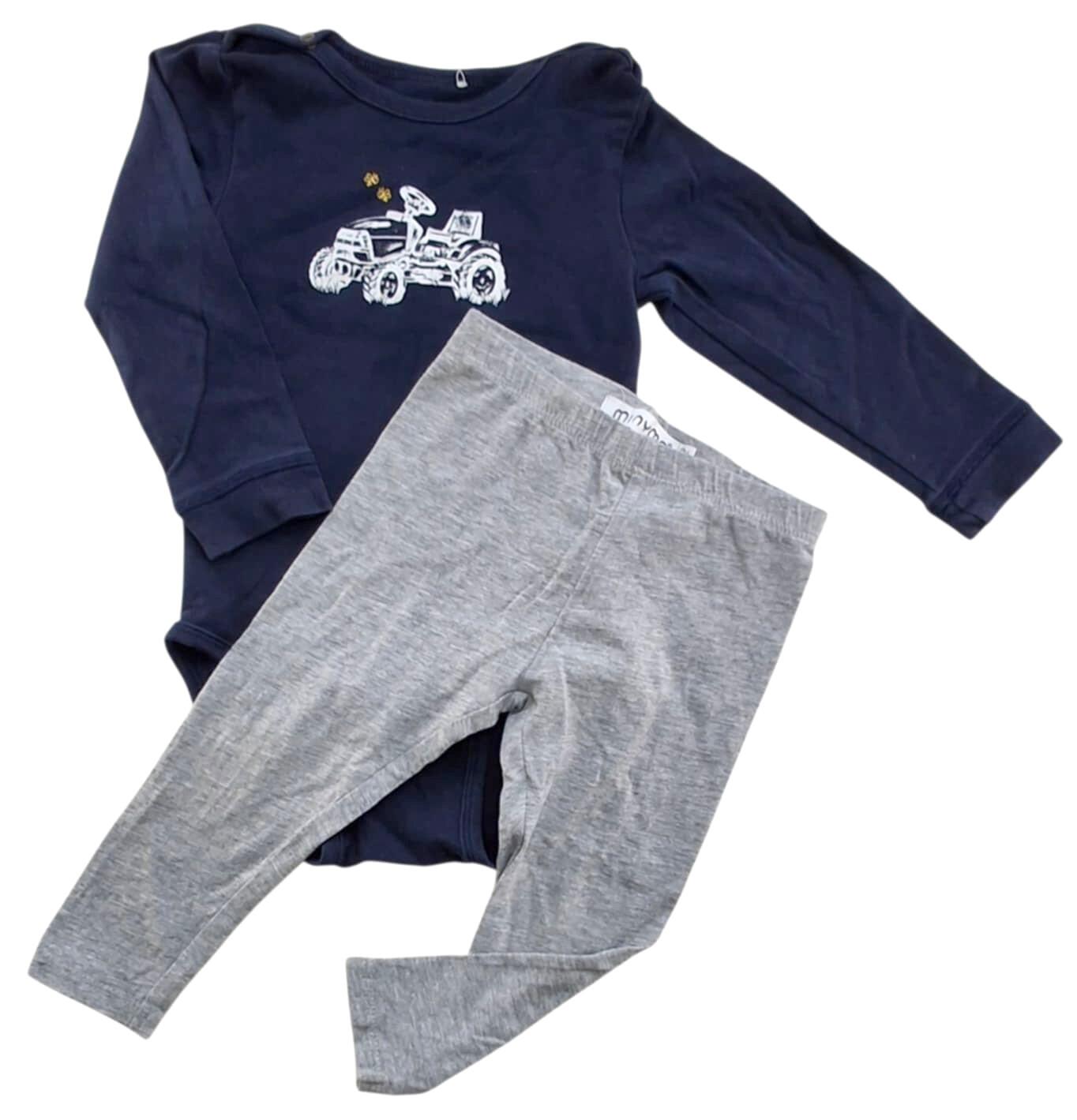 Minymo mørkeblå body og lysegrå bukser str. 80