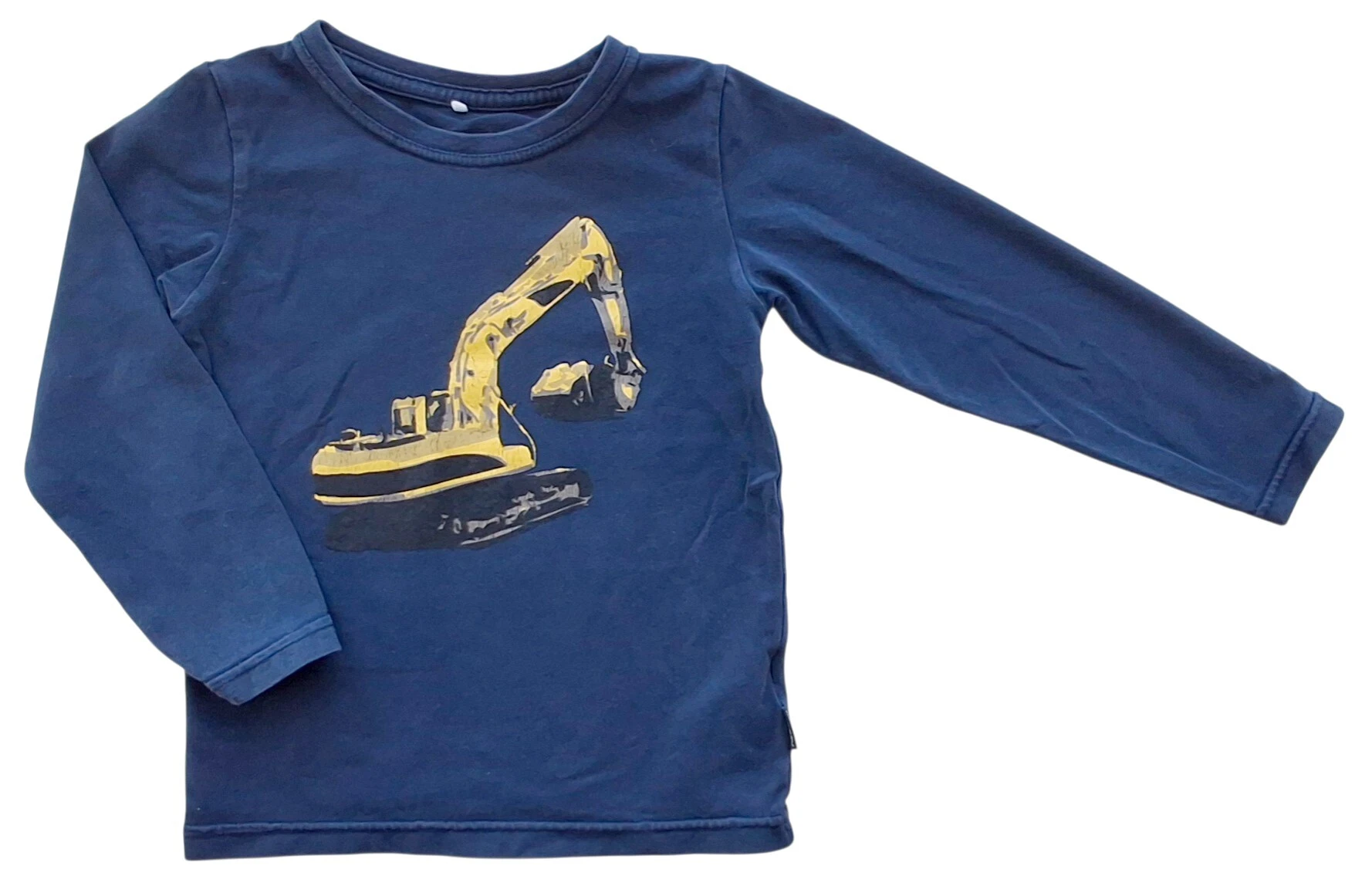 Name it mørkeblå tynd langærmet bluse str. 98 en et tryk på forsiden og med rund halsudskæring. Obs der er lidt krak i trykket.