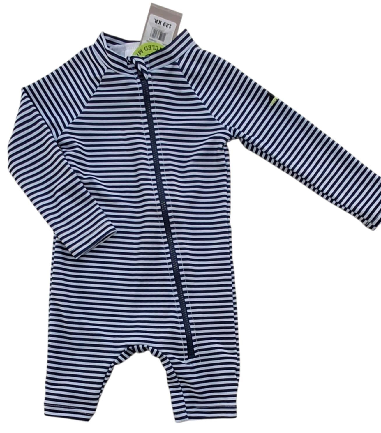 Ny VRS mørkeblå og hvidstribet UV-heldragt str. 68