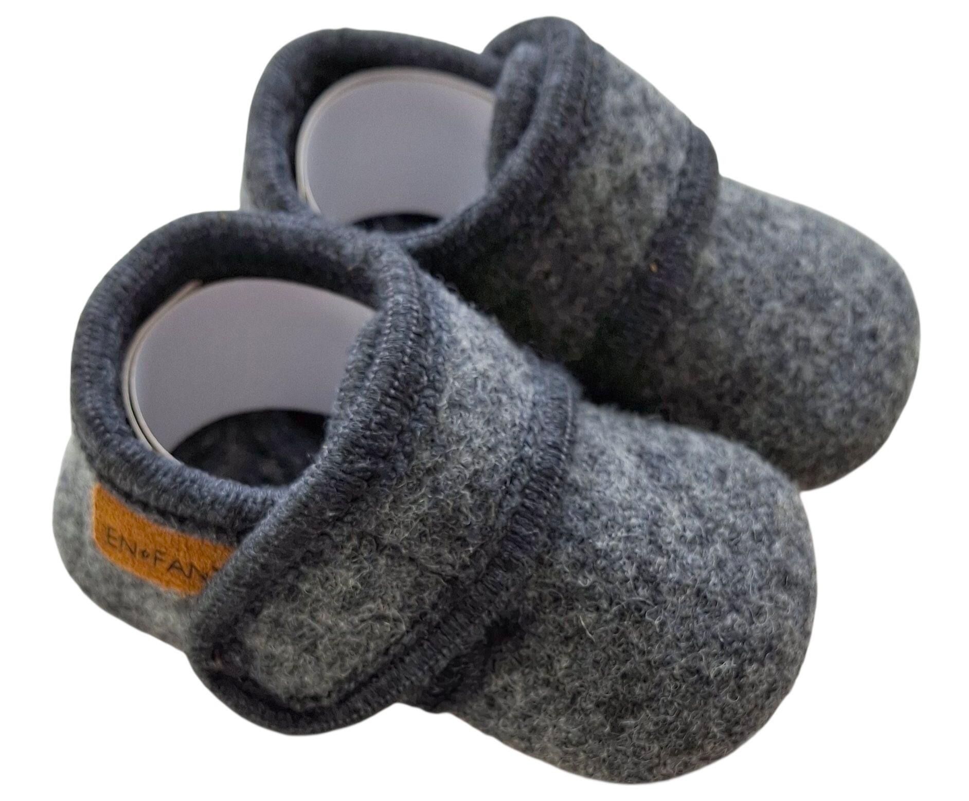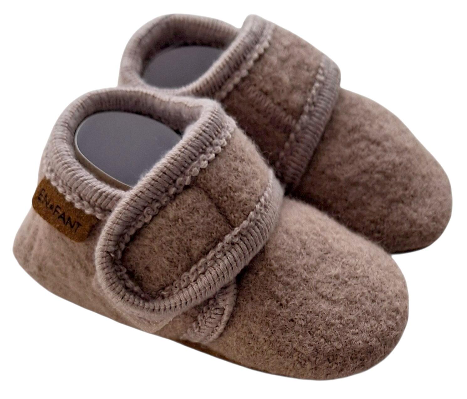 Nye En Fant uld hjemmesko med en fin ruskindsbund og med velcro over foden. 100% uld og med ruskindsbund.