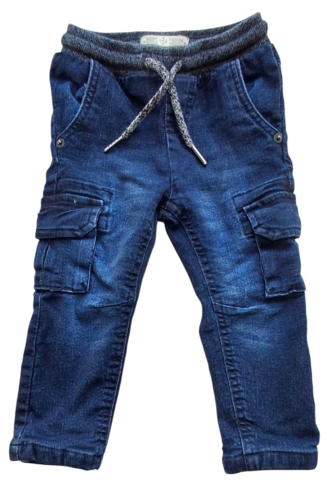 Poco Piano mørkeblå forede bukser str. 86 med skrålommer, lommer på siderne af benene, to baglommer og med elastik i taljen.