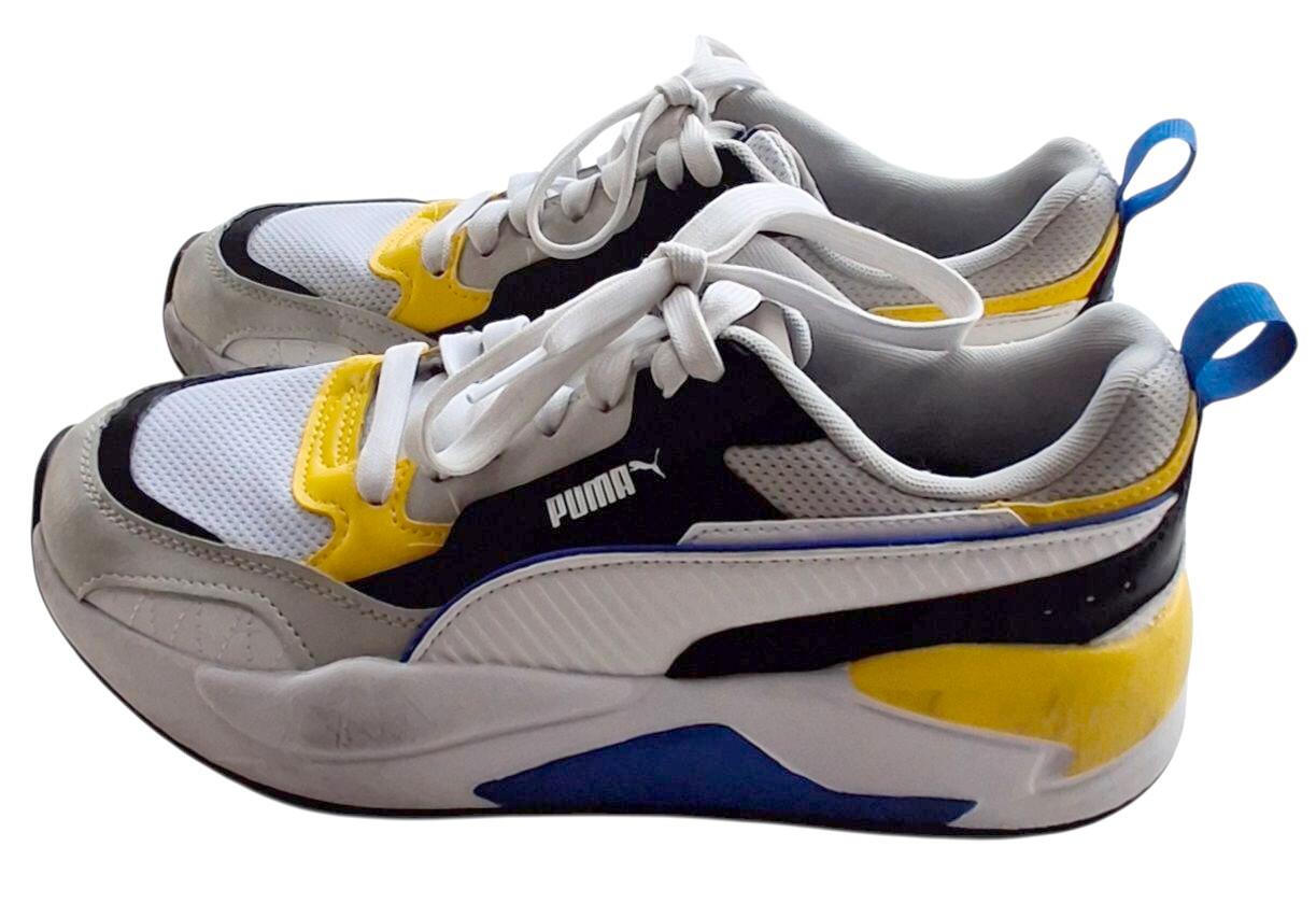 Puma grå og hvide sneakers str. 39 med fine gule og blå kontrast farver, og med hvide snørebånd.