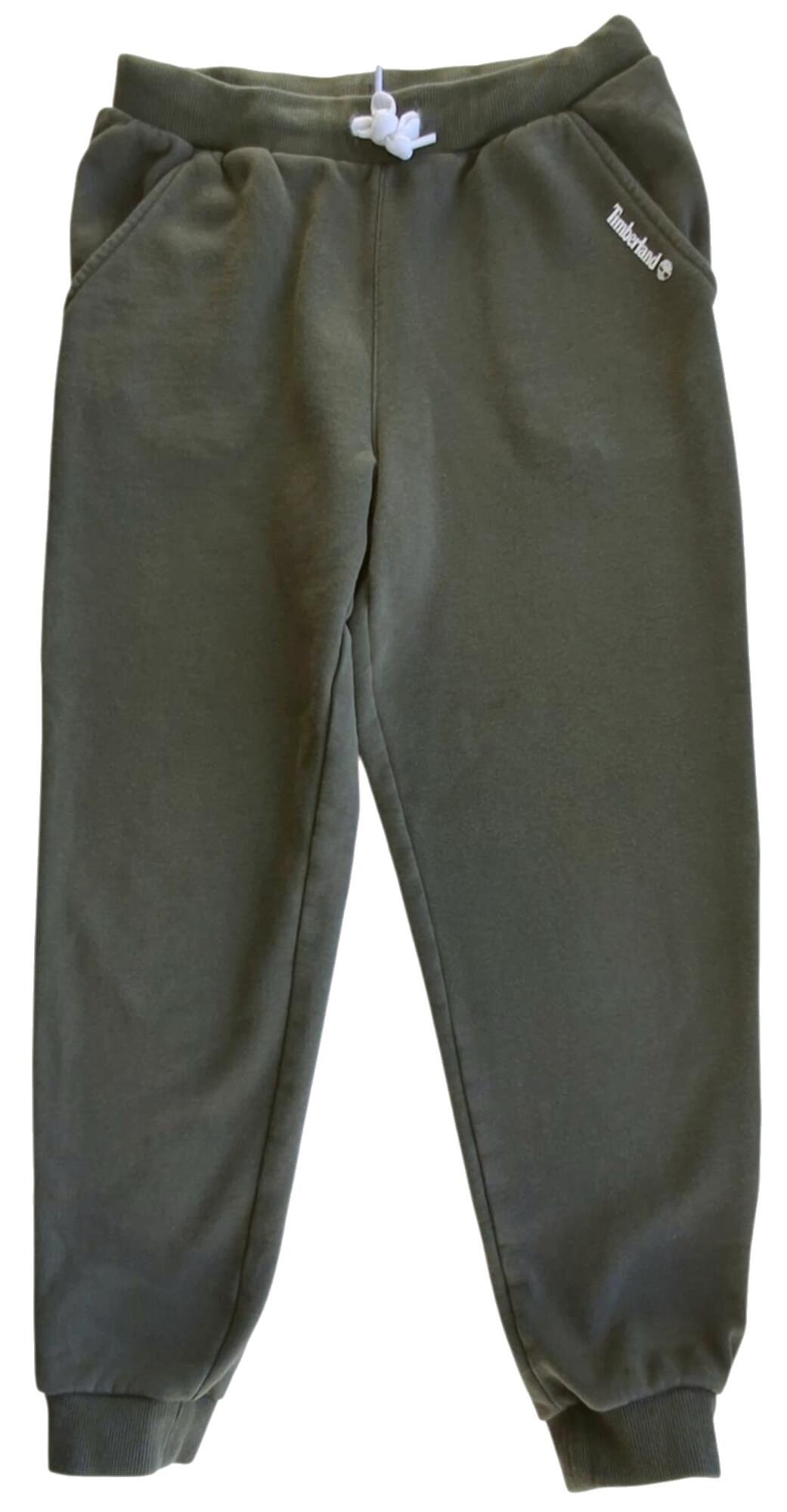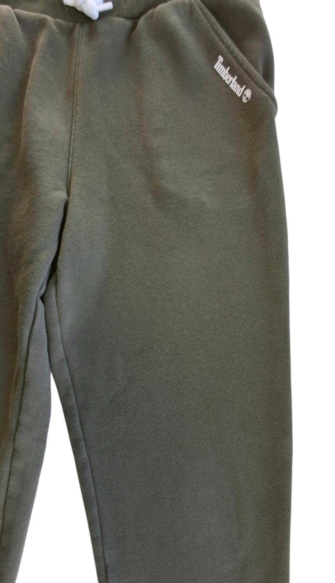 Timberland armygrønne tykke sweatpants str. 162 med skrålommer, rib i benene og elastik i taljen. Obs lidt svage pletter, se billeder.