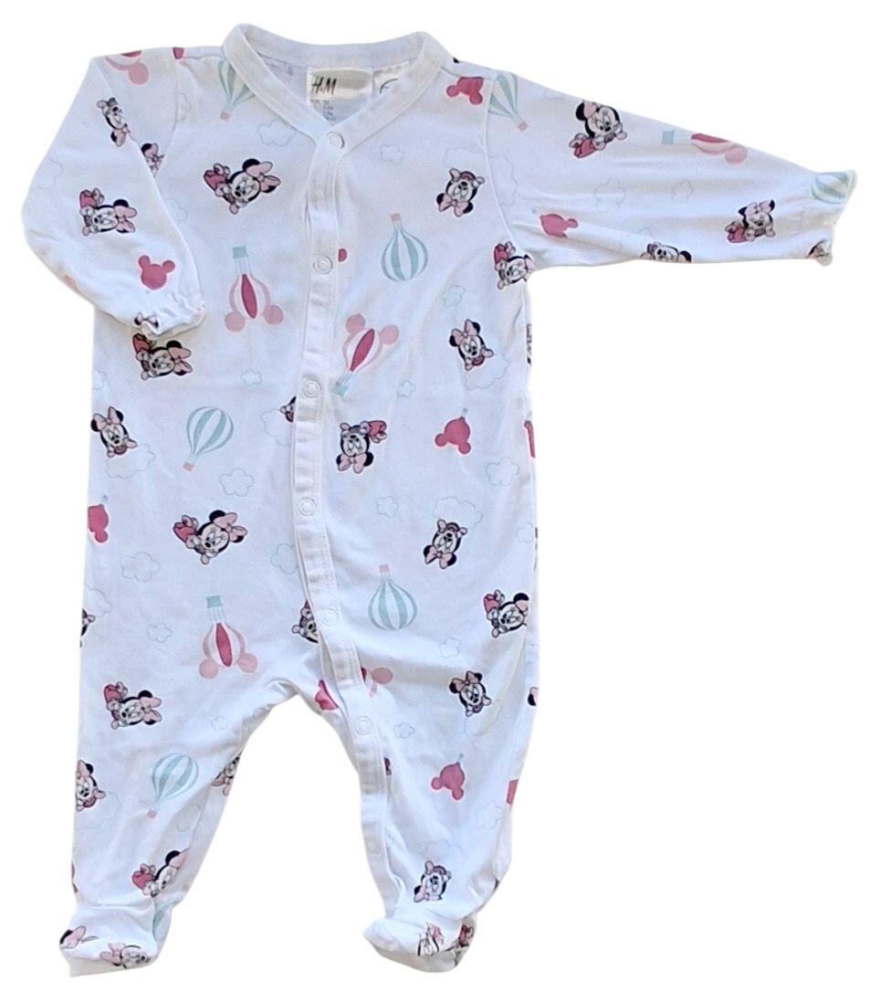 H&M hvid langærmet heldragt str. 56 med fødder, sødt Disney tryk og med trykknapper fra hals til fod.