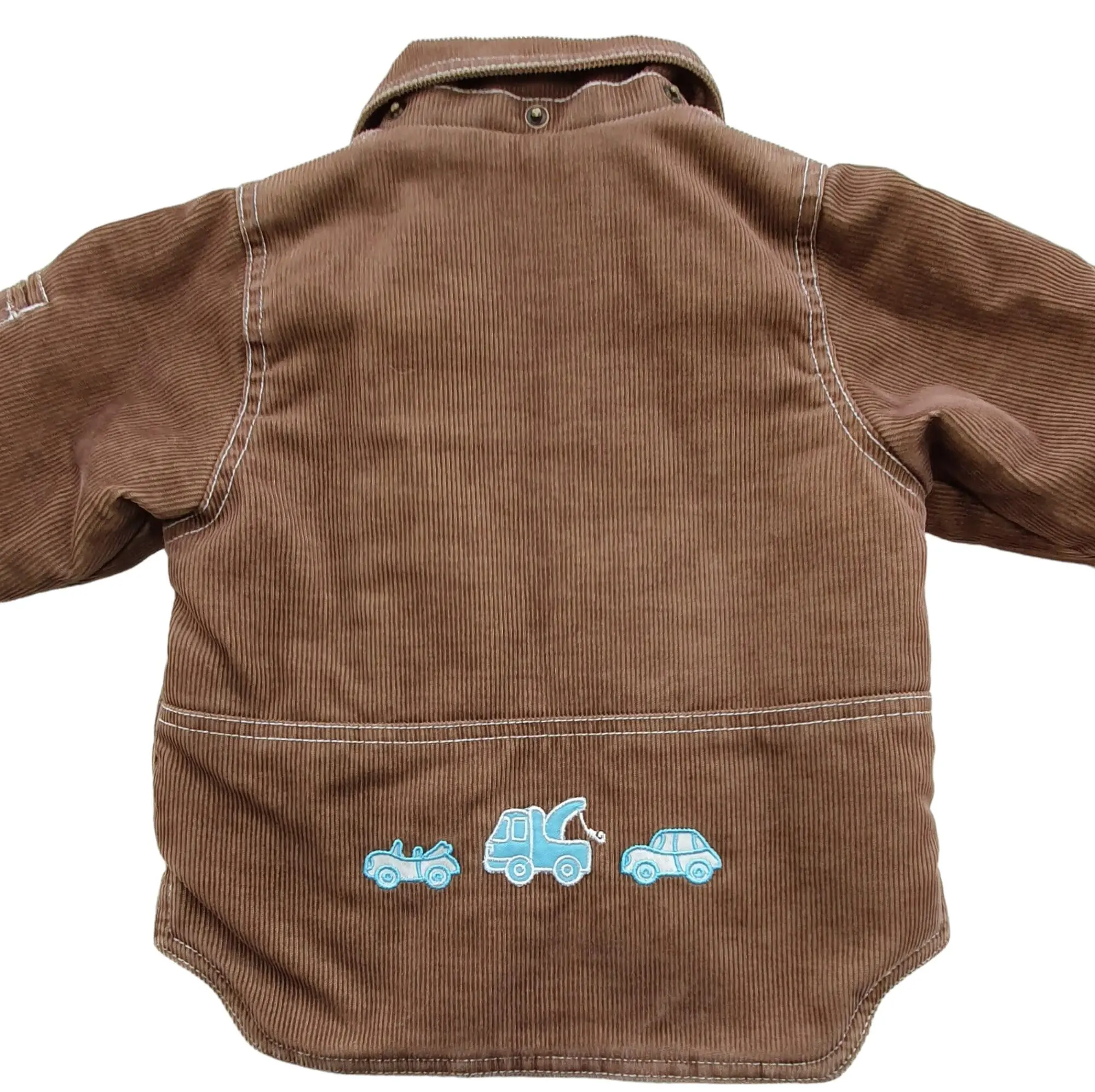 Name It brun fløjlsjakke str. 74 med råhvidt bomulds foer, tre lommer på forsiden, lynlås, lomme på det ene ærme.