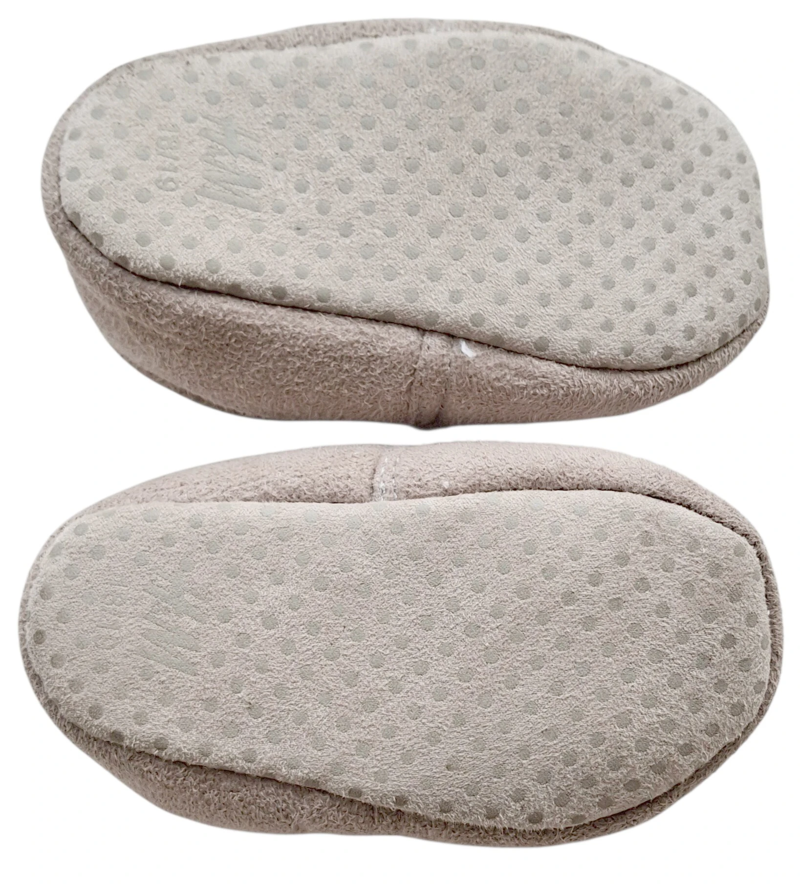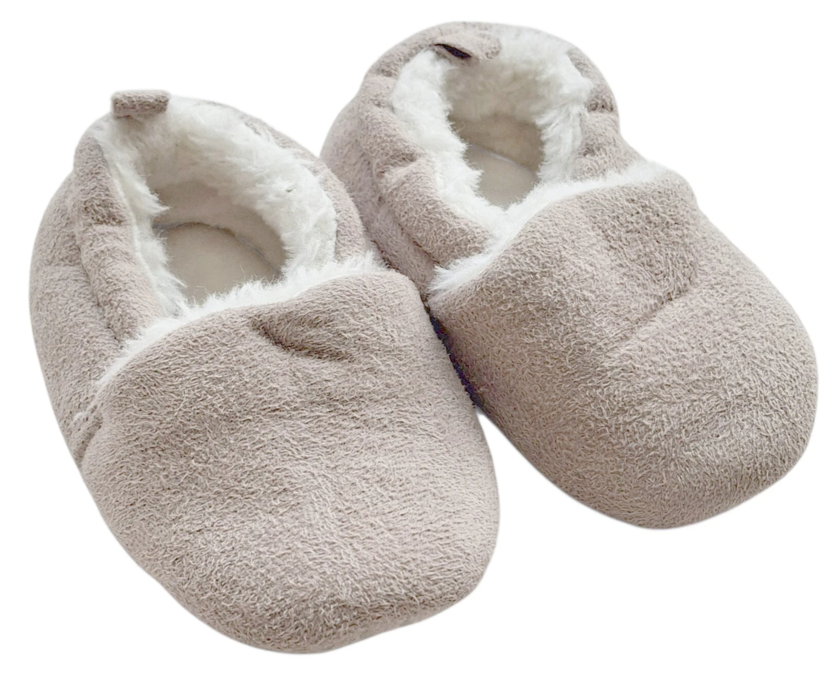 H&M lyse beige bløde futter str. 18-19 med et råhvidt for, og med elastik over foden så den sidder godt fast på foden.