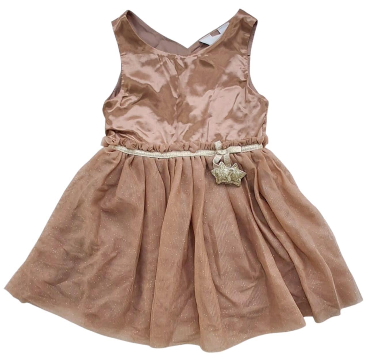 H&M lysebrun ærmeløs fin kjole str. 92 med lidt glimmer, tyl skørt yderst og med tre knapper i nakken/ryggen.