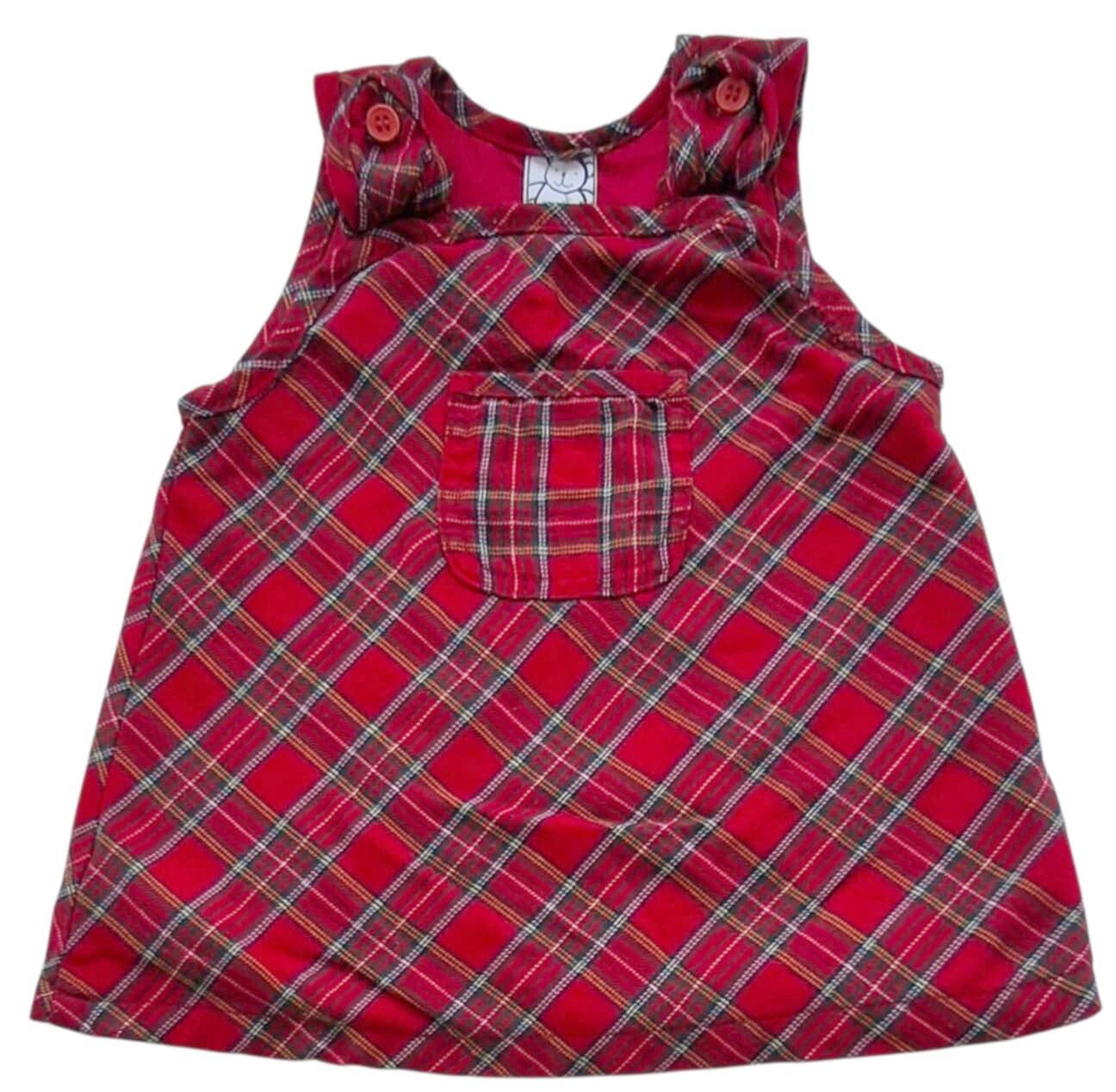 H&M rødternet ærmeløs kjole str. 74 med jule vibes, lomme på forsiden og med knapper på selerne.