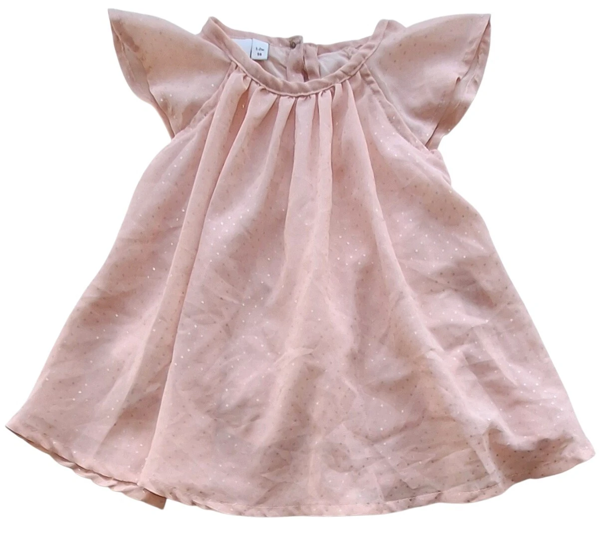 Name it rosa eller ferskenfarvet kjole str. 56 med korte ærmer, prikker på det yderste lag og med et par knapper i nakken.