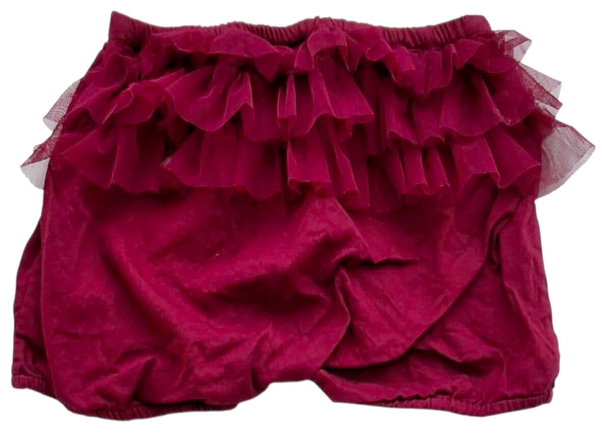 Noa Noa mørkerøde bloomers str. 74 med elastik i benene og i taljen, og med tyl flæser på numsen.