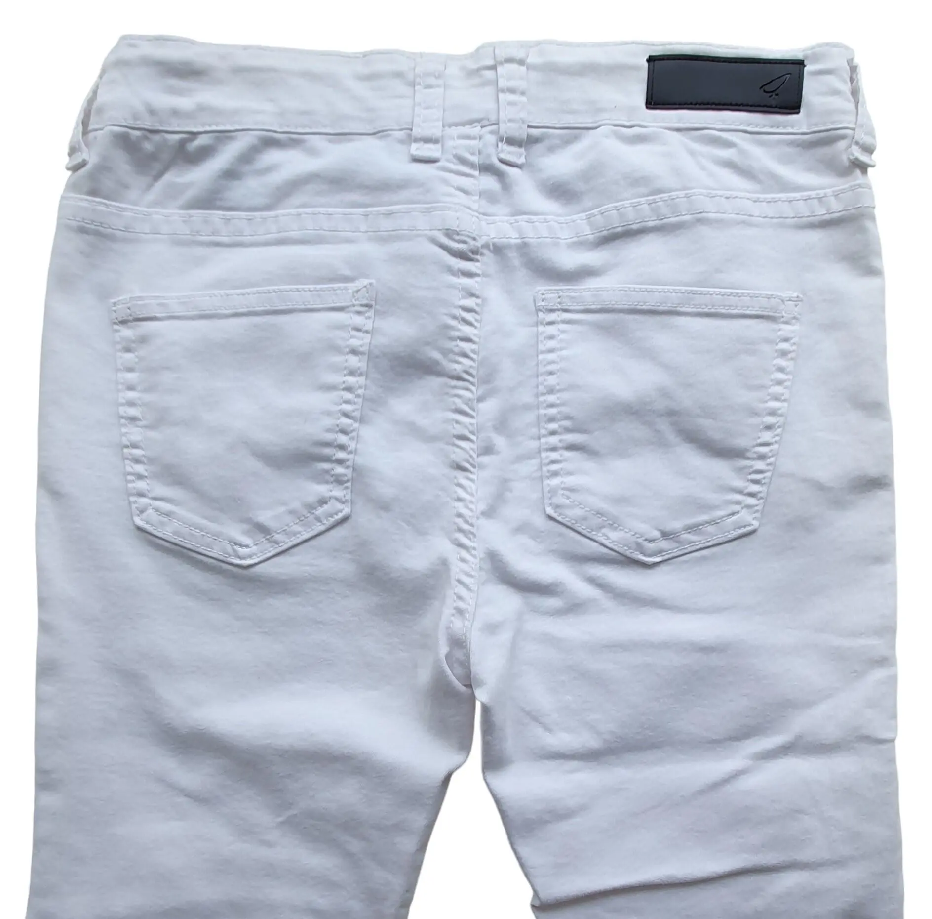 Nye By Hound hvide jeans str. XL (16 år) med dekorativt slidt på knæene, frynsede kanter nederst på bukserne, lommer foran og bagpå, lynlås, knap og justerbar elastik i taljen.
