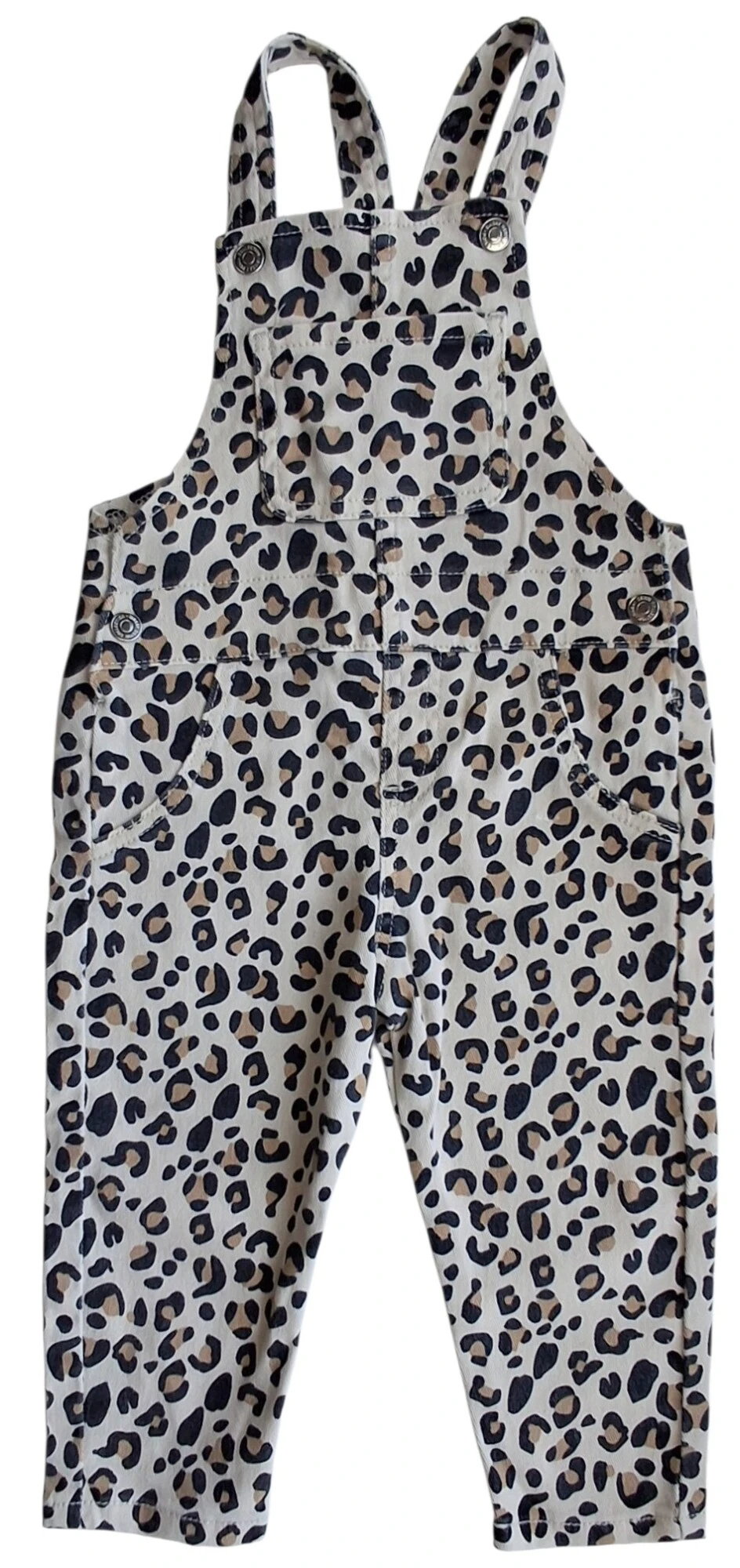 Nye Sinsay baby beige overall's str. 92 med dyreprint, to baglommer, lomme på smækken, trykknapper i siderne og seler over skuldrene. Obs lille vævefejl, se billede.