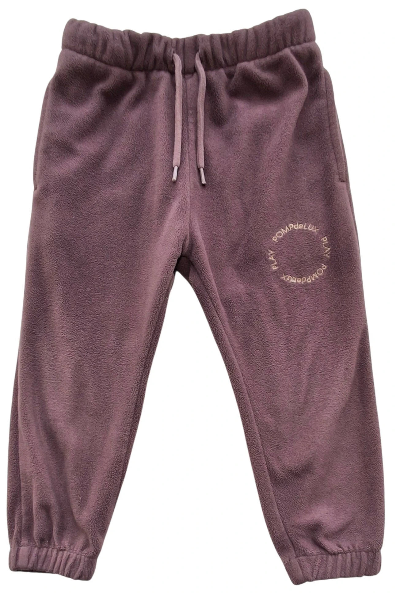 Pomp de lux lilla fleecebukser str. 98-104 med en baglomme, elastik i benene, lommer i siderne og med justerbar elastik i taljen.
