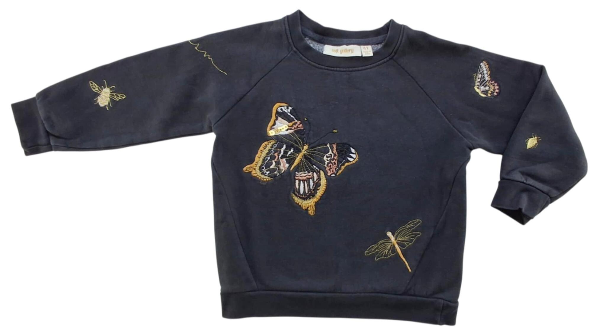 Soft gallery mørkegrå langærmet sweatshirt str. 4 år med flotte broderier og med ib kanter.
