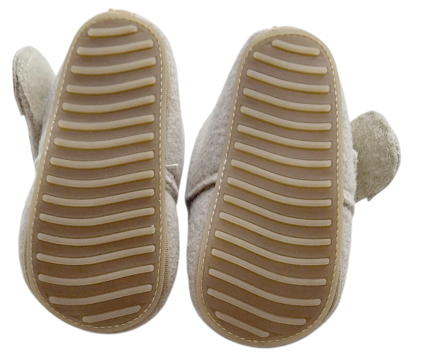 VRS lyse beige filt eller uld hjemmesko str.19-20 (11,5-12 cm) med en velcro over foden og med en god skridsikker bund.