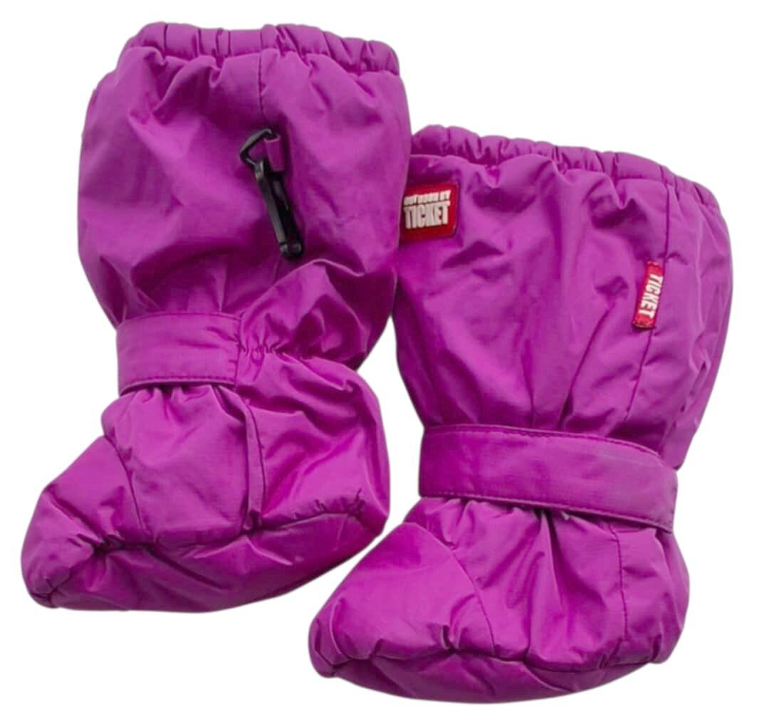 Ticket outdoor rødlilla overtræksfutter str. 62-68 med velcrobånd om anklen og elastik i toppen.