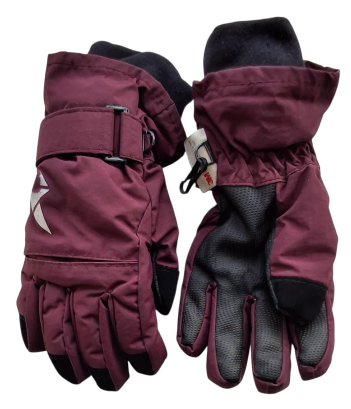 VRS mørkerøde luffer str. 3-5 år med sort varmt for og velcrobånd omkring håndleddet.